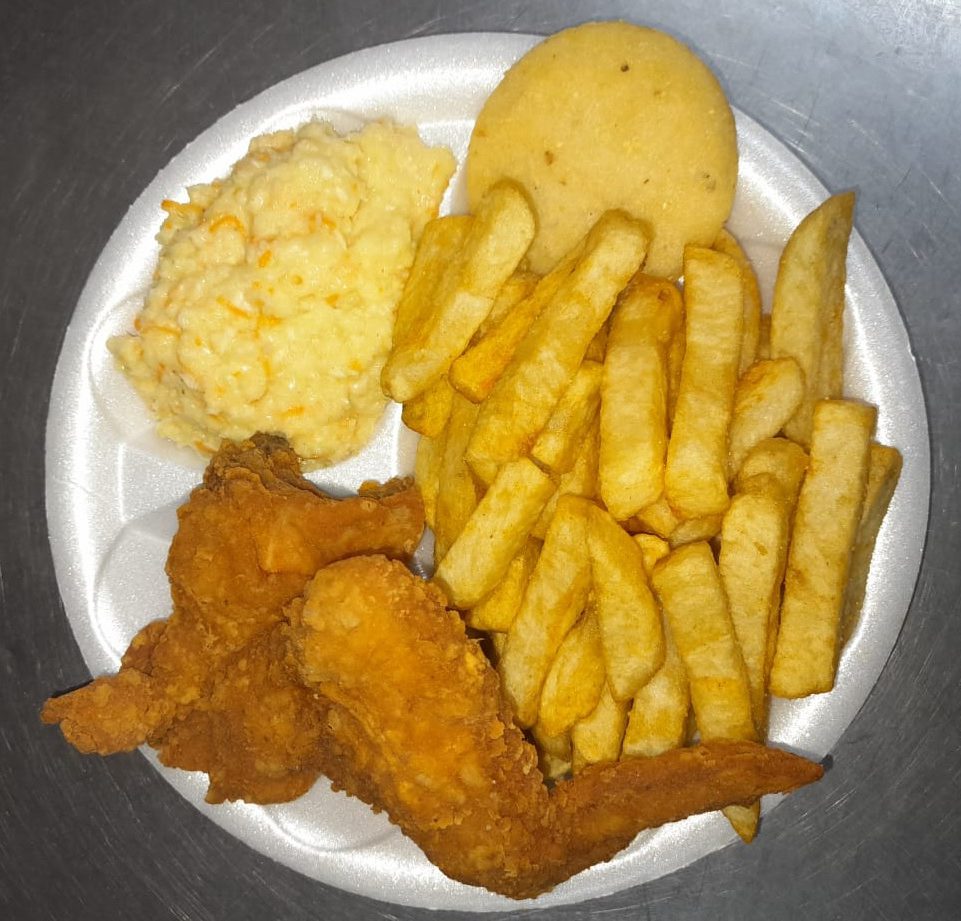 ACOMPAÑADO DE PAPAS A LA FRANCESA + ENSALADA DULCE + AREPA FRITA + PRESA APANADA