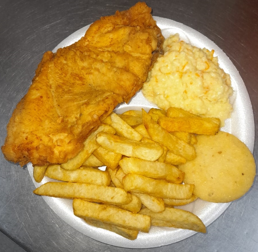 ACOMPAÑADO DE PAPAS A LA FRANCESA + ENSALADA DULCE + AREPA FRITA + PRESA APANADA